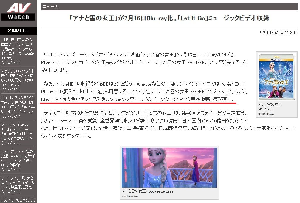 今日、「アナと雪の女王」のMovieNEXと「塔の上のラプンツェル」のMovieNEX版が発売になりました!
